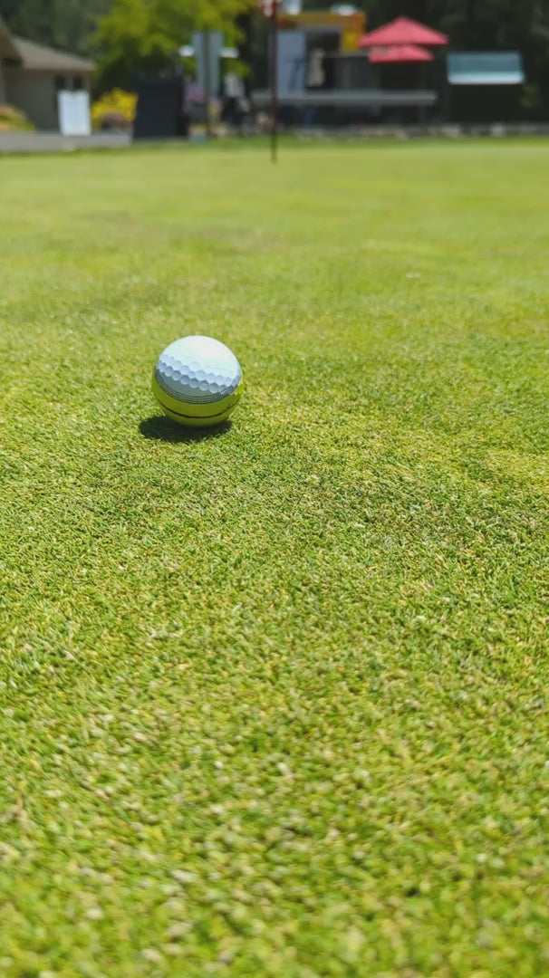 This tool allows for consistency by lining up the dark center line with the hole. A useful tool overtime, it provides a consistent indicator as you familiarize yourself with how much break to play on putts. If you miss a putt you now know where you were aimed so on the next similar breaking putt play slightly more or less break to make the putt!